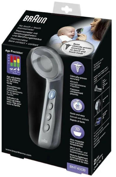 Braun Elektronikus Érintésmentes Orvosi Infravörös Hőmérő Braun BNT400 Black (BNT400 Black)